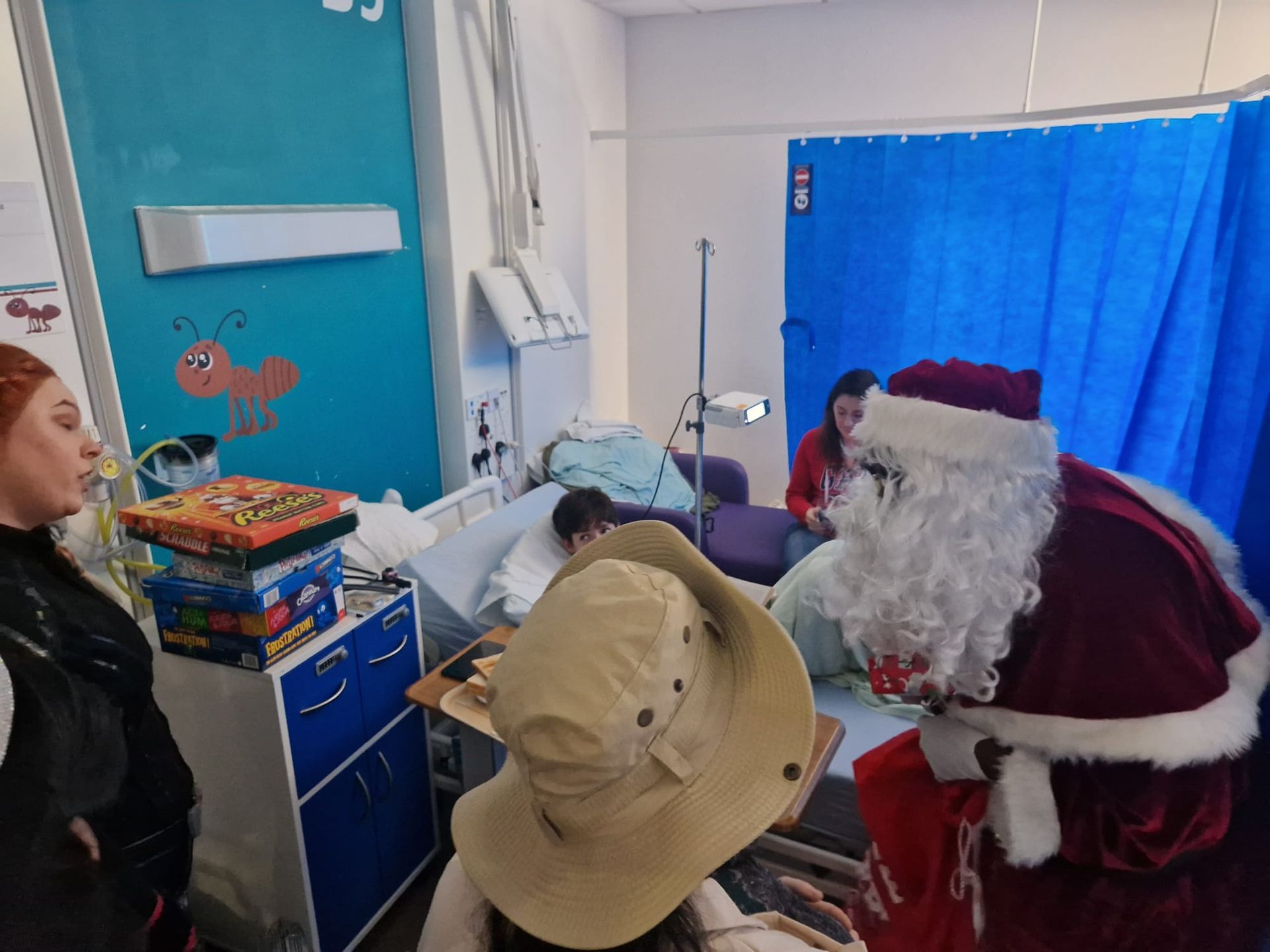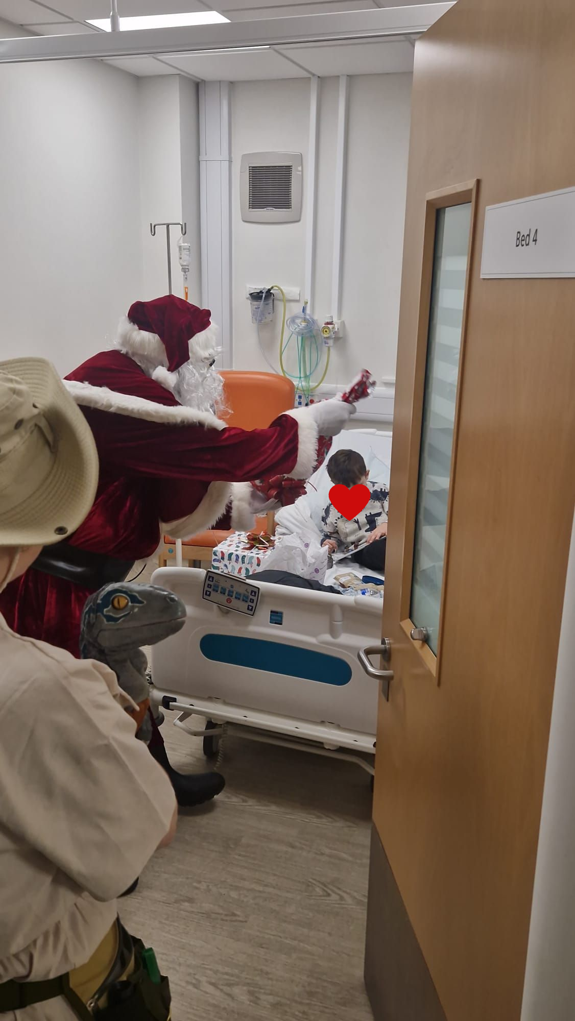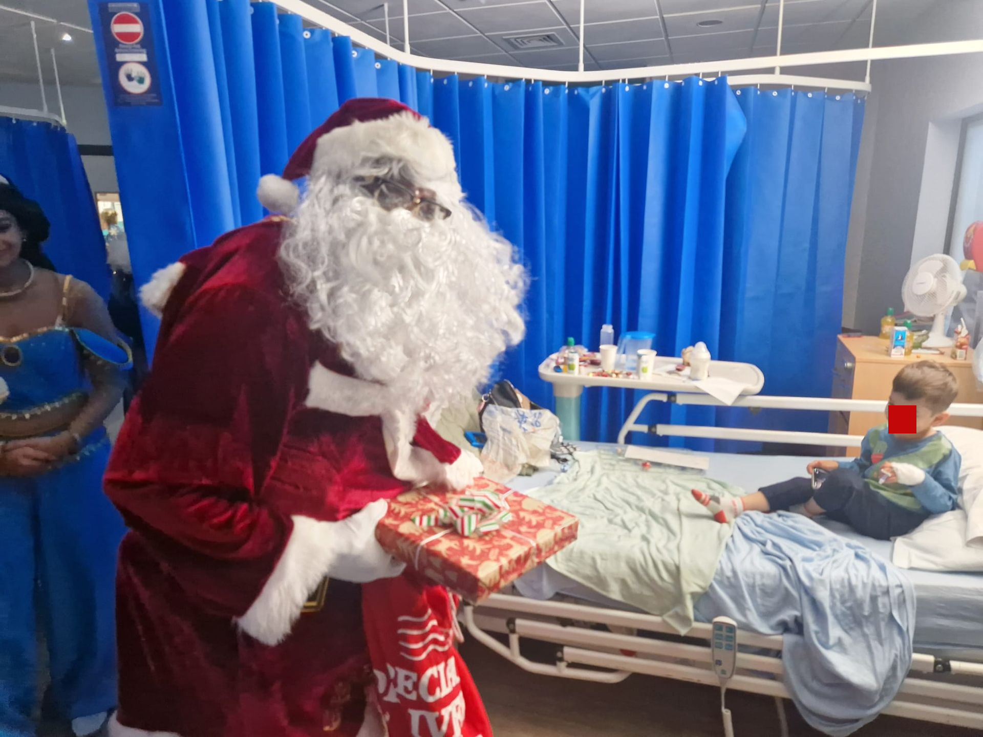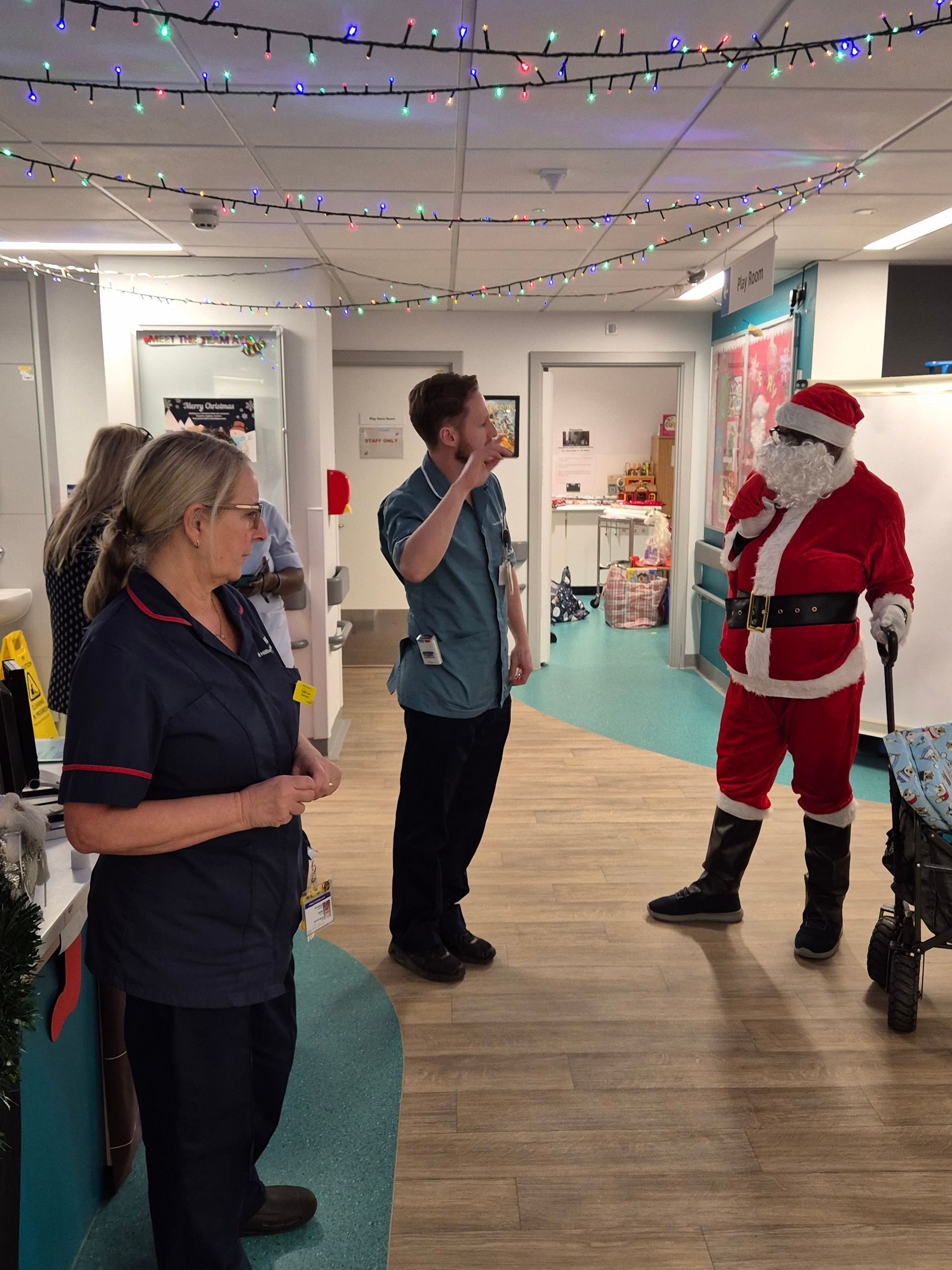 Father Christmas doing ward rounds and bringing smiles to the faces of many of children admitted on Jack's Place children's ward at Northwick Park Hospital Harrow, including those with cancer and their families.