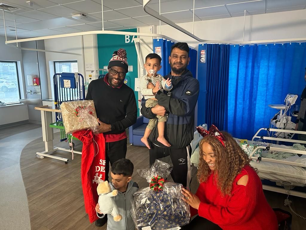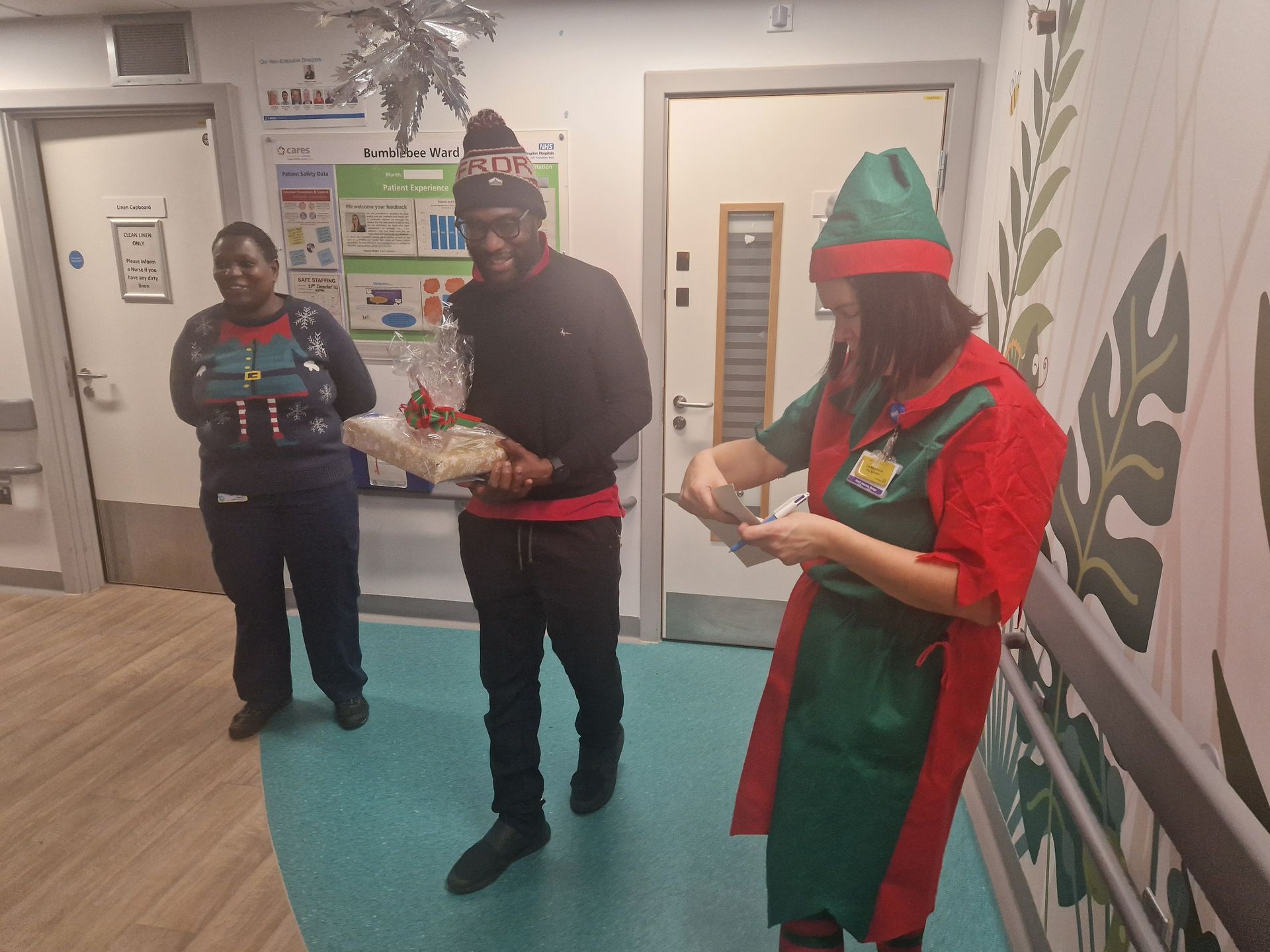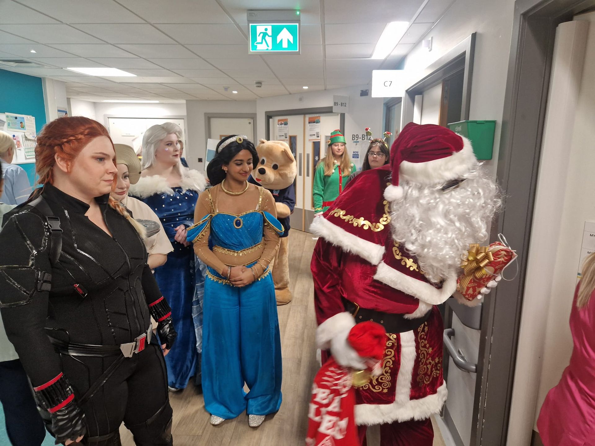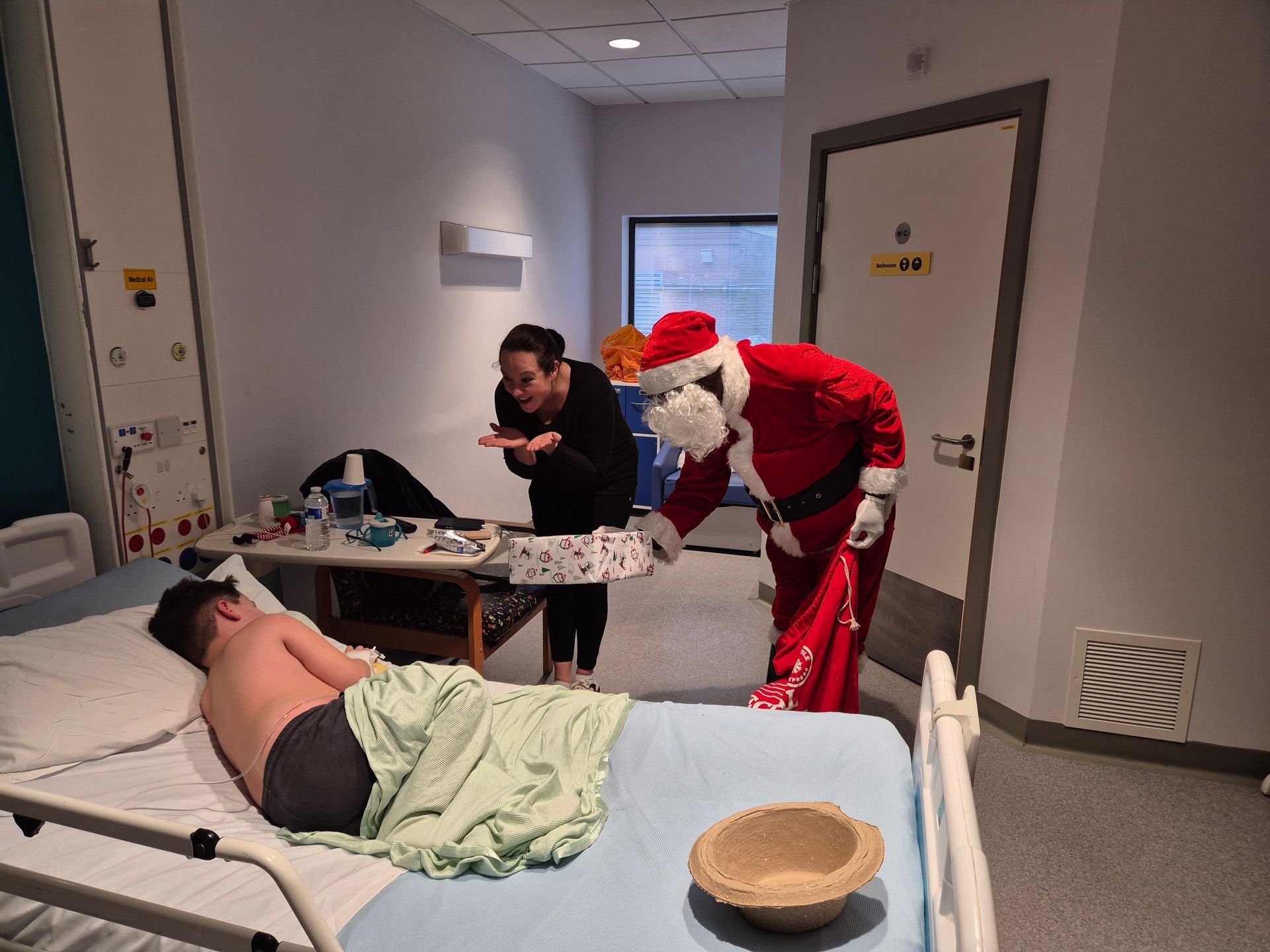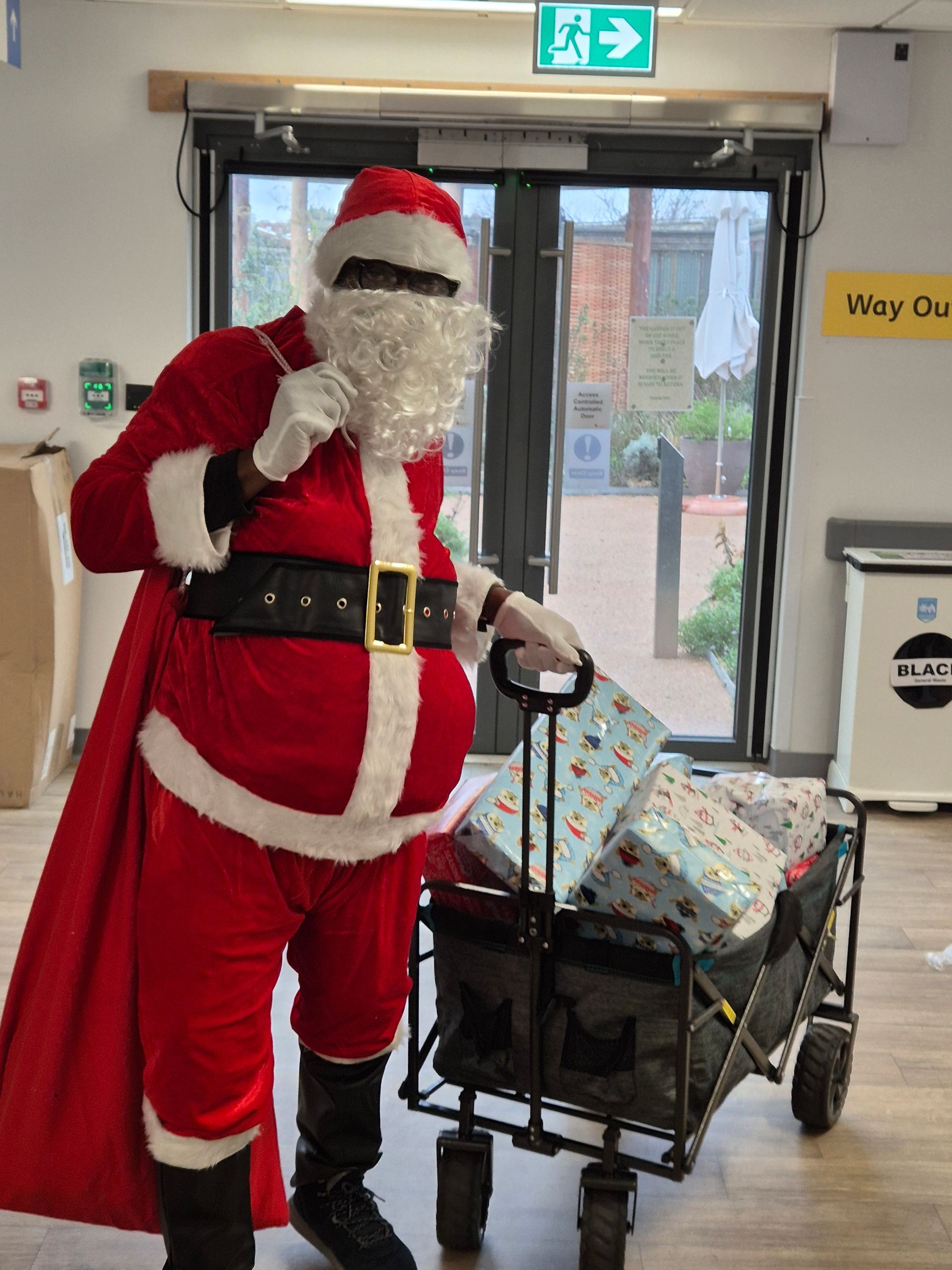 Father Christmas doing ward rounds and bringing smiles to the faces of many of children admitted on Jack's Place children's ward at Northwick Park Hospital Harrow, including those with cancer and their families.