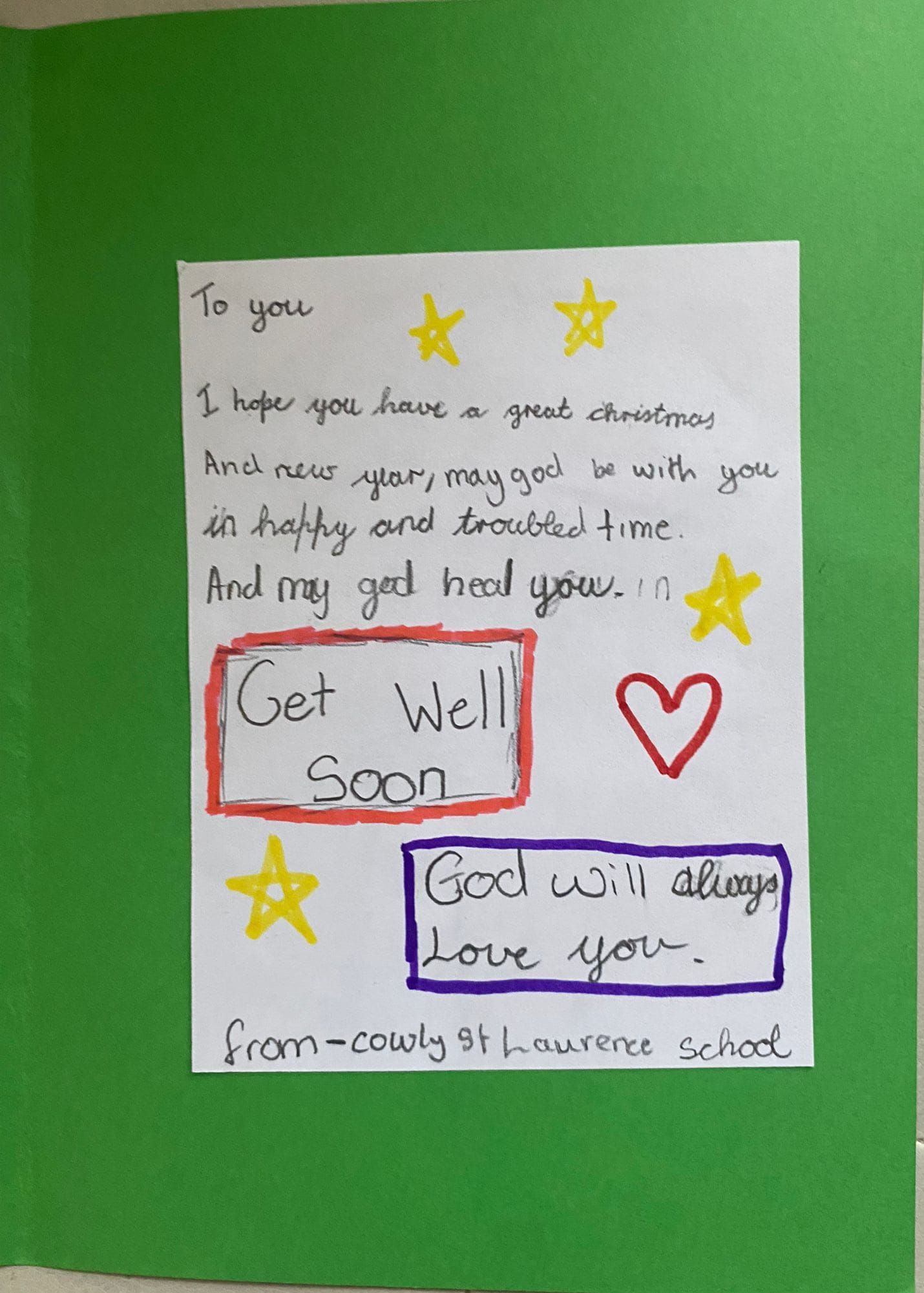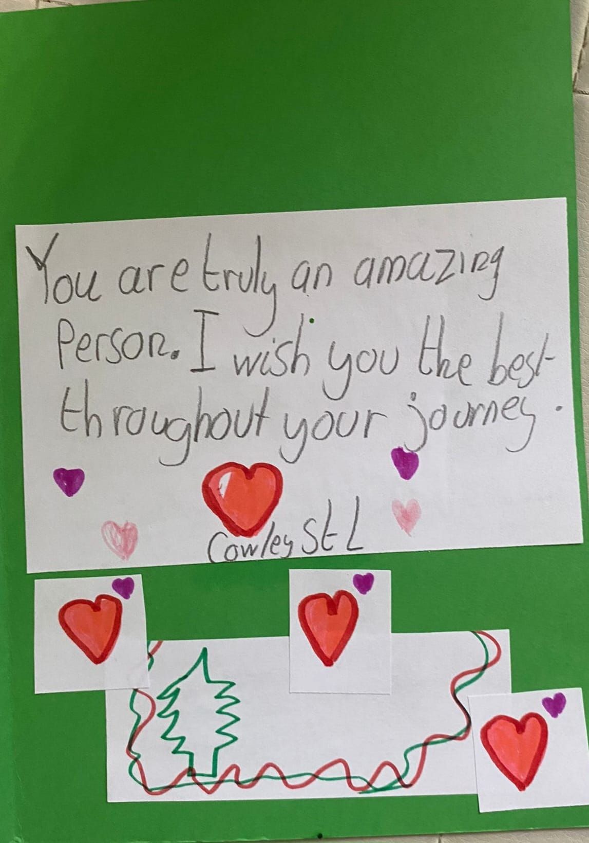 We celebrate the children from Cowley St Laurence primary school, who took time out to create meaningful cards for children with cancer
